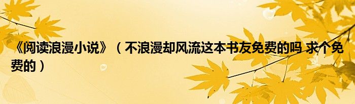 关于《阅读浪漫小说》,不浪漫却风流这本书友免费的吗 求个免费的这个很多人还不知道,今天菲菲来为大家解答以上的问题,现在让我们一起来看看吧!