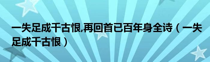 关于一失足成千古恨,再回首已百年身全诗,一失足成千古恨这个很多人还不知道,今天菲菲来为大家解答以上的问题,现在让我们一起来看看吧!