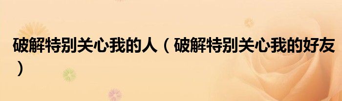 大家好,小晋来为大家解答以下问题,关于破解特别关心我的人,破解特别关心我的好友很多人还不知道,今天让我们一起来看看吧!