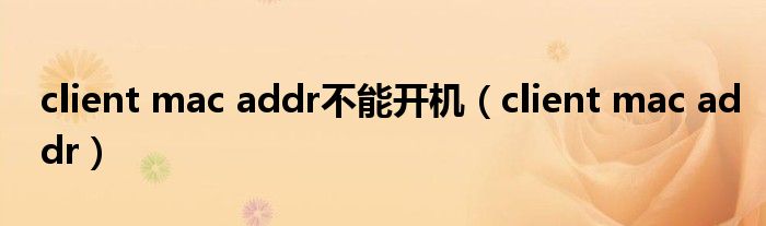 client mac addr不能开机,client mac addr很多人还不知道,乐乐来为大家解答以上问题,现在让我们一起来看看吧!