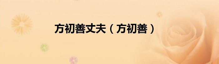关于方初善丈夫,方初善这个很多人还不知道,今天菲菲来为大家解答以上的问题,现在让我们一起来看看吧!