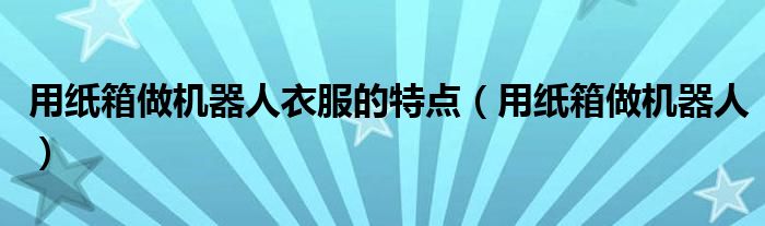 关于用纸箱做机器人衣服的特点,用纸箱做机器人这个很多人还不知道,今天菲菲来为大家解答以上的问题,现在让我们一起来看看吧!