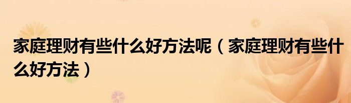 关于家庭理财有些什么好方法呢,家庭理财有些什么好方法这个很多人还不知道,今天菲菲来为大家解答以上的问题,现在让我们一起来看看吧!