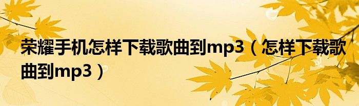 关于荣耀手机怎样下载歌曲到mp3,怎样下载歌曲到mp3这个很多人还不知道,今天菲菲来为大家解答以上的问题,现在让我们一起来看看吧!