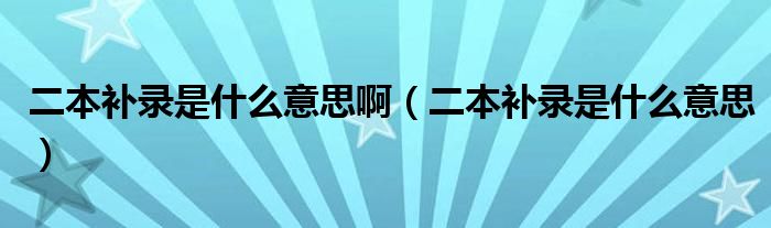 关于二本补录是什么意思啊,二本补录是什么意思这个很多人还不知道,今天菲菲来为大家解答以上的问题,现在让我们一起来看看吧!
