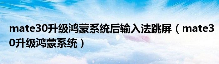 大家好,雨雨来为大家解答以上问题,mate30升级鸿蒙系统后输入法跳屏,mate30升级鸿蒙系统很多人还不知道,现在让我们一起来看看吧!