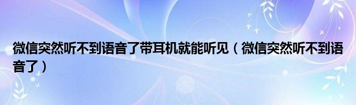 大家好,小晋来为大家解答以下问题,关于微信突然听不到语音了带耳机就能听见,微信突然听不到语音了很多人还不知道,今天让我们一起来看看吧!