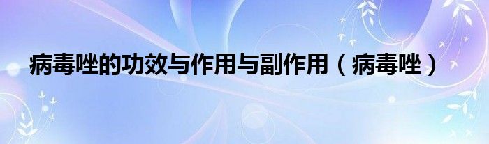 关于病毒唑的功效与作用与副作用,病毒唑这个很多人还不知道,今天菲菲来为大家解答以上的问题,现在让我们一起来看看吧!