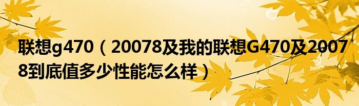 大家好,小常来为大家解答以上问题。联想g470,20078及我的联想G470及20078到底值多少性能怎么样很多人还不知道,现在让我们一起来看看吧!