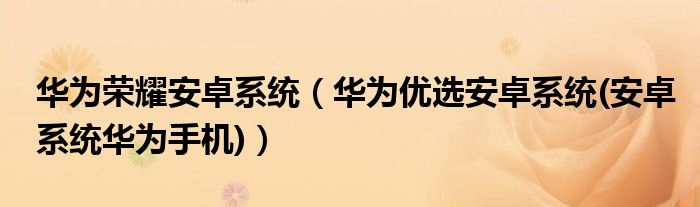 大家好,小常来为大家解答以上问题。华为荣耀安卓系统,华为优选安卓系统(安卓系统华为手机)很多人还不知道,现在让我们一起来看看吧!