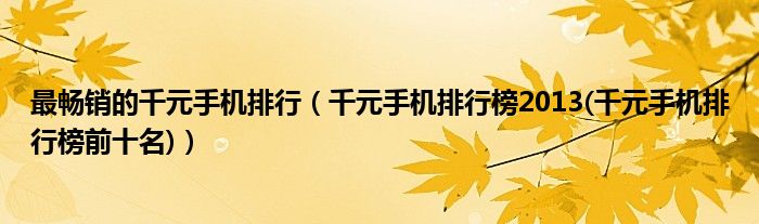 大家好,小常来为大家解答以上问题。最畅销的千元手机排行,千元手机排行榜2013(千元手机排行榜前十名)很多人还不知道,现在让我们一起来看看吧!