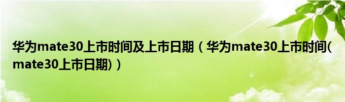 大家好,小常来为大家解答以上问题。华为mate30上市时间及上市日期,华为mate30上市时间(mate30上市日期)很多人还不知道,现在让我们一起来看看吧!