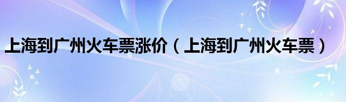 关于上海到广州火车票涨价,上海到广州火车票这个很多人还不知道,今天菲菲来为大家解答以上的问题,现在让我们一起来看看吧!