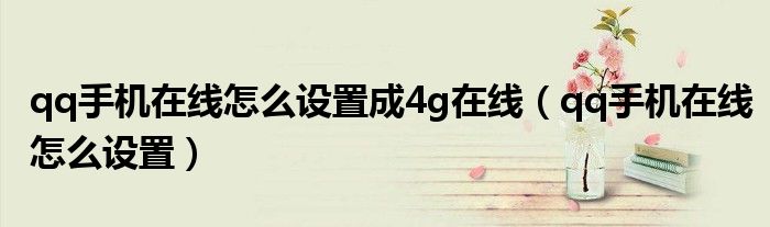 大家好,小晋来为大家解答以下问题,关于qq手机在线怎么设置成4g在线,qq手机在线怎么设置很多人还不知道,今天让我们一起来看看吧!