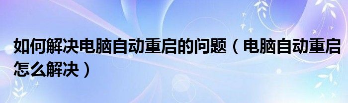 关于如何解决电脑自动重启的问题,电脑自动重启怎么解决这个很多人还不知道,今天菲菲来为大家解答以上的问题,现在让我们一起来看看吧!