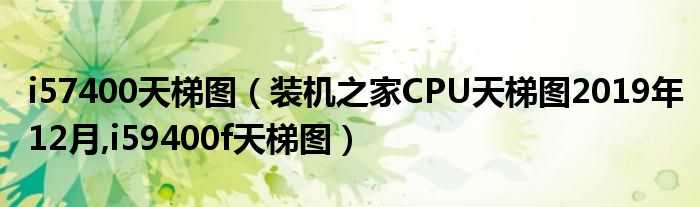 i57400天梯图(装机之家CPU天梯图2019年12月,i59400f天梯图)