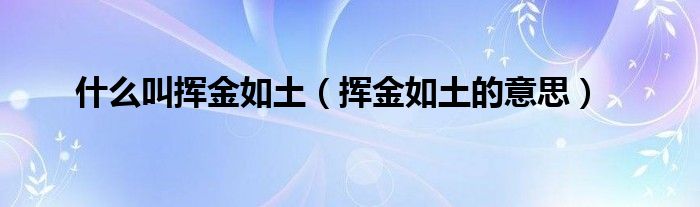 大家好,小晋来为大家解答以下问题,关于什么叫挥金如土,挥金如土的意思很多人还不知道,今天让我们一起来看看吧!