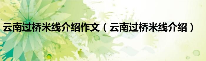 关于云南过桥米线介绍作文,云南过桥米线介绍这个很多人还不知道,今天菲菲来为大家解答以上的问题,现在让我们一起来看看吧!