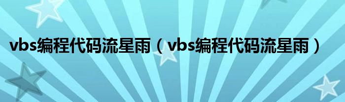 关于vbs编程代码流星雨,vbs编程代码流星雨这个很多人还不知道,今天菲菲来为大家解答以上的问题,现在让我们一起来看看吧!
