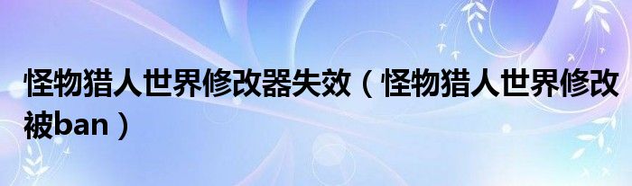 大家好,小晋来为大家解答以下问题,关于怪物猎人世界修改器失效,怪物猎人世界修改被ban很多人还不知道,今天让我们一起来看看吧!