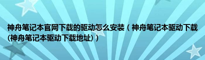 大家好,小常来为大家解答以上问题。神舟笔记本官网下载的驱动怎么安装,神舟笔记本驱动下载(神舟笔记本驱动下载地址)很多人还不知道,现在让我们一起来看看吧!