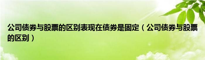 关于公司债券与股票的区别表现在债券是固定,公司债券与股票的区别这个很多人还不知道,今天菲菲来为大家解答以上的问题,现在让我们一起来看看吧!