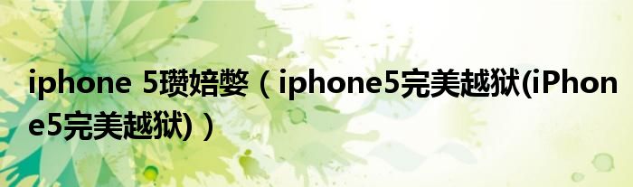大家好,小常来为大家解答以上问题。iphone 5瓒婄嫳,iphone5完美越狱(iPhone5完美越狱)很多人还不知道,现在让我们一起来看看吧!