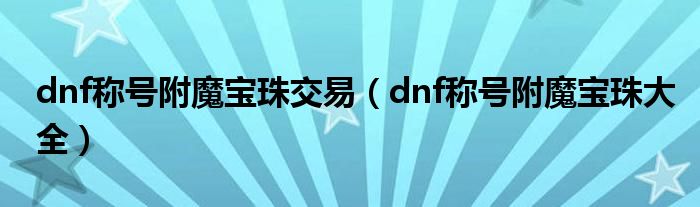 大家好,雨雨来为大家解答以上问题,dnf称号附魔宝珠交易,dnf称号附魔宝珠大全很多人还不知道,现在让我们一起来看看吧!