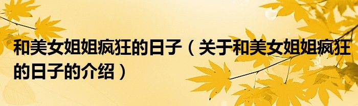 大家好,今天小乐来为大家解答以上的问题。和美女姐姐疯狂的日子,关于和美女姐姐疯狂的日子的介绍很多人还不知道,现在让我们一起来看看吧!