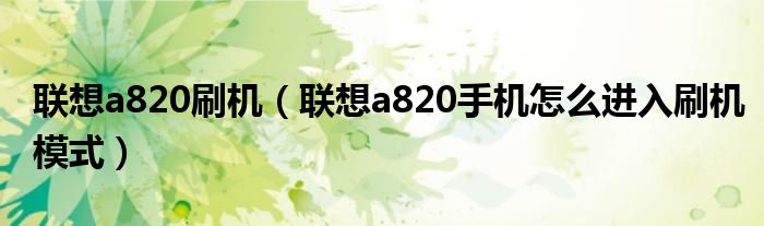 联想a820刷机(联想a820手机怎么进入刷机模式)