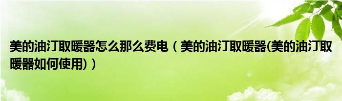 大家好,小常来为大家解答以上问题。美的油汀取暖器怎么那么费电,美的油汀取暖器(美的油汀取暖器如何使用)很多人还不知道,现在让我们一起来看看吧!