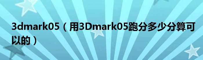大家好,小常来为大家解答以上问题。3dmark05,用3Dmark05跑分多少分算可以的很多人还不知道,现在让我们一起来看看吧!