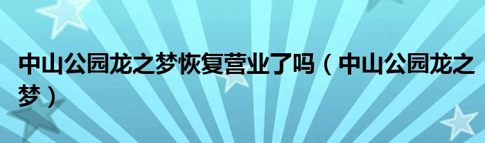 大家好,小晋来为大家解答以下问题,关于中山公园龙之梦恢复营业了吗,中山公园龙之梦很多人还不知道,今天让我们一起来看看吧!
