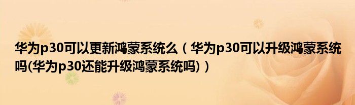 大家好,小常来为大家解答以上问题。华为p30可以更新鸿蒙系统么,华为p30可以升级鸿蒙系统吗(华为p30还能升级鸿蒙系统吗)很多人还不知道,现在让我们一起来看看吧!