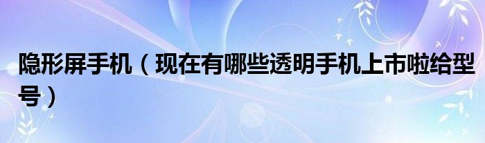 大家好,小常来为大家解答以上问题。隐形屏手机,现在有哪些透明手机上市啦给型号很多人还不知道,现在让我们一起来看看吧!
