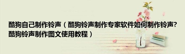 以上就是我们小编为大家讲解的如何使用酷狗铃声制作专家制作一个属于自己的铃声的具体的步骤,需要的朋友快来试试吧,想了解更多精彩教程请继续关注我们网站!