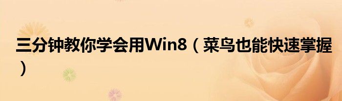 大家好,今天小悦来为大家解答以上问题。三分钟教你学会用Win8,菜鸟也能快速掌握很多人还不知道,现在让我们一起来看看吧!