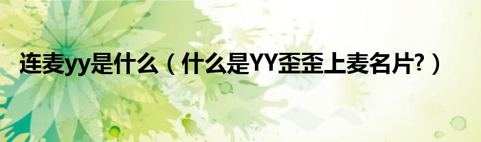 大家好,今天小悦来为大家解答以上问题。连麦yy是什么,什么是YY歪歪上麦名片?很多人还不知道,现在让我们一起来看看吧!
