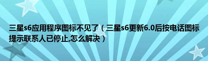 大家好,今天小悦来为大家解答以上问题。三星s6应用程序图标不见了,三星s6更新6.0后按电话图标提示联系人已停止,怎么解决很多人还不知道,现在让我们一起来看看吧!