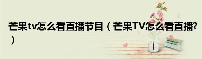 大家好,今天小悦来为大家解答以上问题。芒果tv怎么看直播节目,芒果TV怎么看直播?很多人还不知道,现在让我们一起来看看吧!