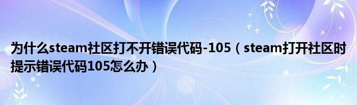 大家好,今天小悦来为大家解答以上问题。为什么steam社区打不开错误代码-105,steam打开社区时提示错误代码105怎么办很多人还不知道,现在让我们一起来看看吧!