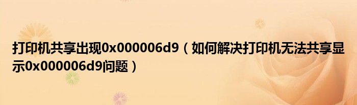 大家好,今天小悦来为大家解答以上问题。打印机共享出现0x000006d9,如何解决打印机无法共享显示0x000006d9问题很多人还不知道,现在让我们一起来看看吧!