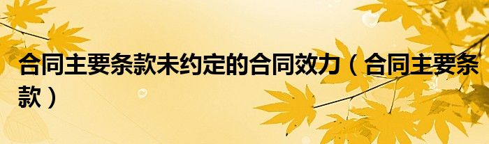 关于合同主要条款未约定的合同效力,合同主要条款这个很多人还不知道,今天菲菲来为大家解答以上的问题,现在让我们一起来看看吧!