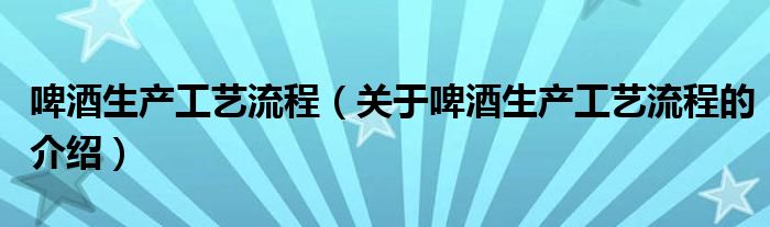 啤酒生产工艺流程(关于啤酒生产工艺流程的介绍)