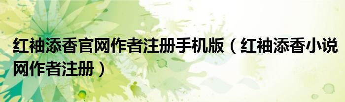 关于红袖添香官网作者注册手机版,红袖添香小说网作者注册这个很多人还不知道,今天菲菲来为大家解答以上的问题,现在让我们一起来看看吧!