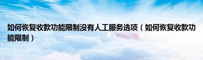 大家好,小晋来为大家解答以下问题,关于如何恢复收款功能限制没有人工服务选项,如何恢复收款功能限制很多人还不知道,今天让我们一起来看看吧!