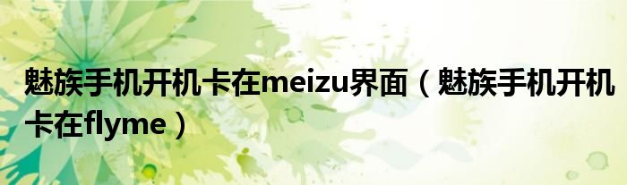 大家好,小晋来为大家解答以下问题,关于魅族手机开机卡在meizu界面,魅族手机开机卡在flyme很多人还不知道,今天让我们一起来看看吧!