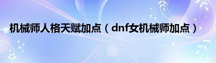 大家好,雨雨来为大家解答以上问题,机械师人格天赋加点,dnf女机械师加点很多人还不知道,现在让我们一起来看看吧!