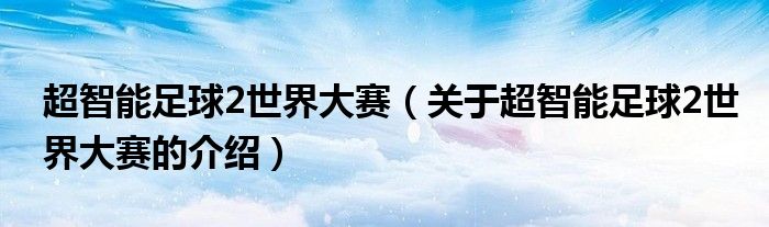 大家好,今天小乐来为大家解答以上的问题。超智能足球2世界大赛,关于超智能足球2世界大赛的介绍很多人还不知道,现在让我们一起来看看吧!