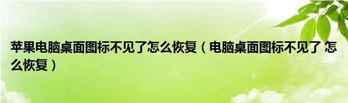 关于苹果电脑桌面图标不见了怎么恢复,电脑桌面图标不见了 怎么恢复这个很多人还不知道,今天菲菲来为大家解答以上的问题,现在让我们一起来看看吧!